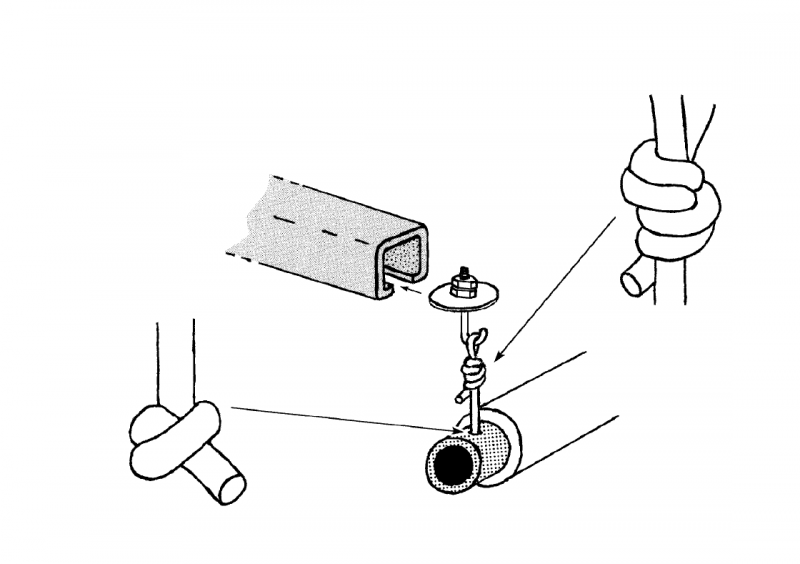 - Thread the cord through the holes in the pipe and tie a loop at each end. The loops should be large enough to easily slide on and off of a J-bolt (Fig. 3).