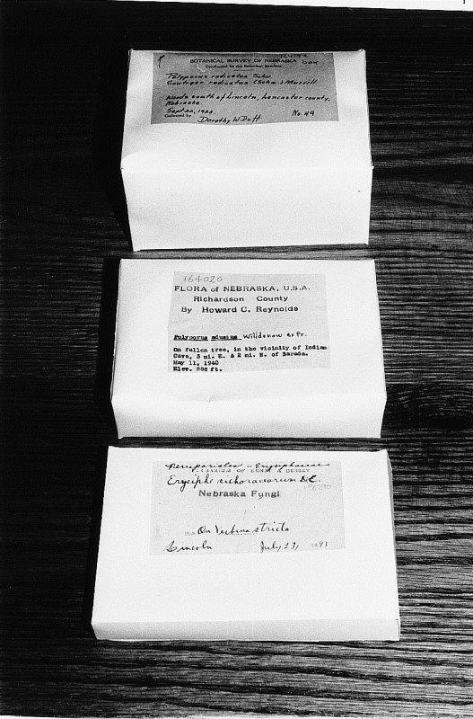 These boxes are designed to provide stable storage for herbarium specimens, or parts of specimens, that do not fit easily in 4in x 6in packets or herbarium sheets (e.g., shelf fungi, lichens on rocks, large nuts).