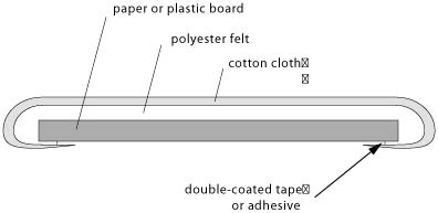 - Fold the felt back over the board edges and attach the sides with double sided tape.